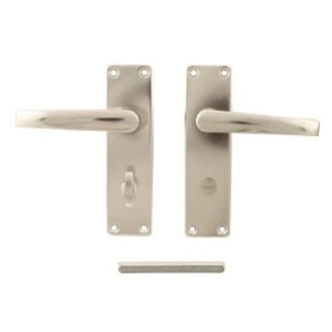 A lever on plate sprung satin aluminium handle, ideally suited for contract work.