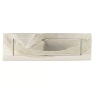 The one piece grade 304 Stainless Steel letter plate flap with 180 degree opening and robust zinc pivot points.