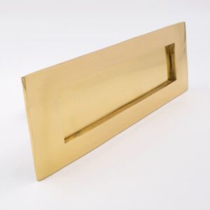 Victorian style gravity letter plate for traditional wooden doors.