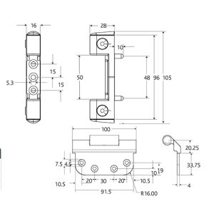 The Fab & Fix Haven composite door hinge is specifically designed for timber and composite doors. 3 Hinges can support a maximum door sash weight of 90kg. The sash part may be morticed in or surface fixed. This is the 4R16 version with a 4mm sash piece thickness and with 16mm radius corners.