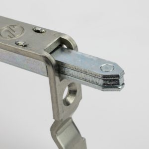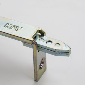 A KFV reverse action bottom shootbolt for use with multipoint locks with serrated drive rods. The overall faceplate length is 180mm, the width is 16mm and the throw of the shootbolt is 22mm. A shootbolt keep is not supplied and can be ordered separately, see below ordering code for the associated keep. RD55185X – Shootbolt keep