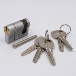 Quality 6 pin mechanism with a dual finish and sacrificial breakpoints on both sides which halves the number of cylinders you need to hold in stock. It also has anti-drill and anti-pick pins, making the cylinder robust and very secure.