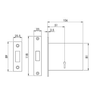 In line with a number of other mortice locks, these locks feature a black lock case but they have unique measurements that identify them from other mortice locks. Please refer to the line drawing for details.