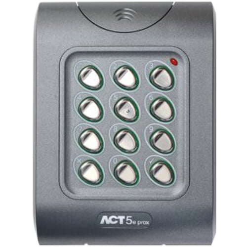 The ACT5e PROX digital keypad is a simple to use and easy to install standalone access control product for a single door. The unit combines a keypad with a proximity card reader system for up to 50 individual user codes and 50 cards or fobs. Keypad backlighting enhances functionality at night or in poor light conditions. Keypad is contained in a stylish polycarbonate housing, with stainless steel keys and potted electronics, allowing for indoor and outdoor installation. The ACT 5e PROX may be surface or flush mounted on to a standard single gang electrical back box. Supplied boxed.