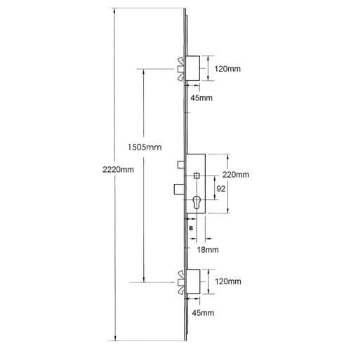 However, part: AGB2PB35 is a potential alternative. Part AGB2PB35 is the same lock but different locking point positions. If it’s not possible to move the hook positions, we’d recommend a VERSA V-MPL replacement lock which comes with replacement keeps and the ability to move the locking positions to suit the original placement.
