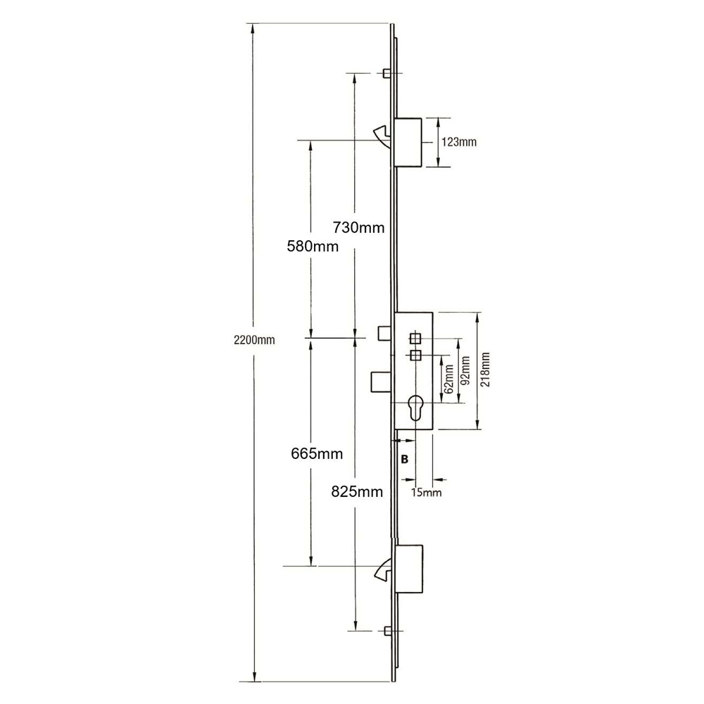 Although some original Avocet multipoint 4 roller door locks feature a single spindle and lift lever functionality, all current locks are only available in a double spindle nightlatch configuration. The centres are at 62mm and 92mm, but if the nightlatch functionality is not required, the lock can still be used as a lift lever version using the top spindle.