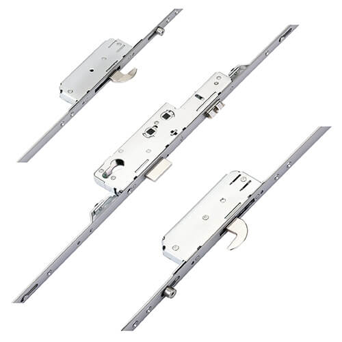 This Avocet multipoint door lock features 2 Rollers, 2 Hooks, 1 Deadbolt & 1 Latch.