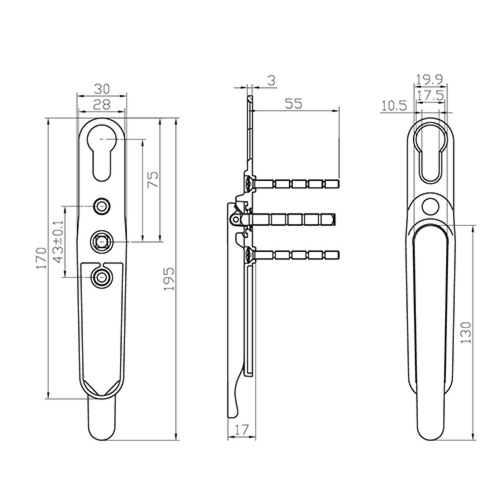 This Clearline handle is used with Bi-fold door mechanisms.