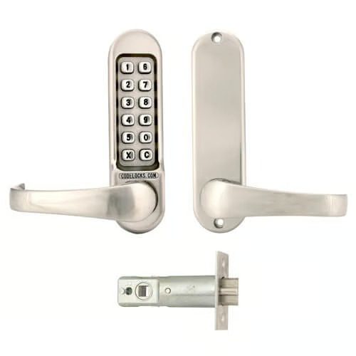 Heavy-duty digital door locks with full-size lever handles, supplied with Mortice tubular latch (60mm backset), with Anti-thrust snib feature.