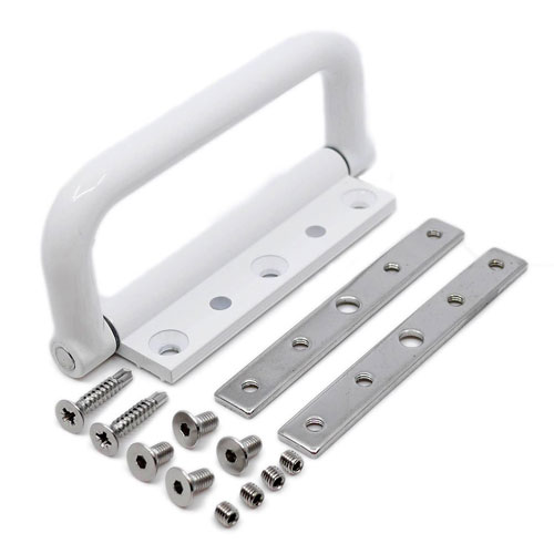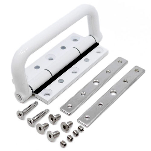 This DEBAR Visofold aluminium bi-fold pull hinge is available in black and white and either open inwards or open outwards.