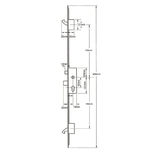 ERA Latch Deadbolt 2 Large Hooks Split Spindle Multipoint Door Lock – Option 2 (top hook to spindle = 730mm)