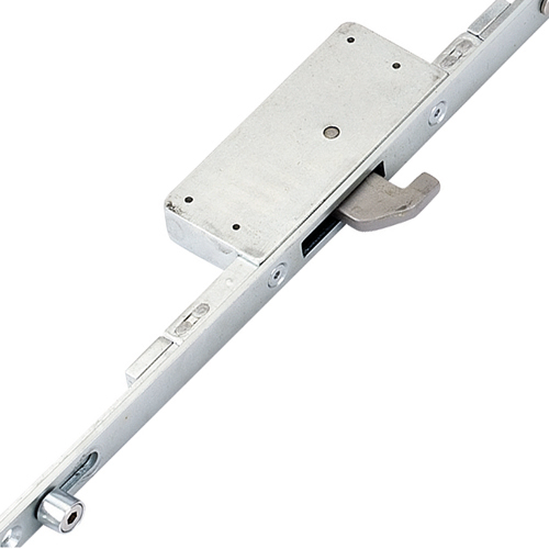 A unique multipoint lock with a hook immediately above the latch. Full length keeps are required for this lock because of the unique set of locking points.