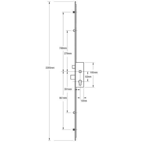 This GU Europa multipoint door lock features 2 Rollers, 2 Mushrooms1 Deadbolt & 1 Latch.