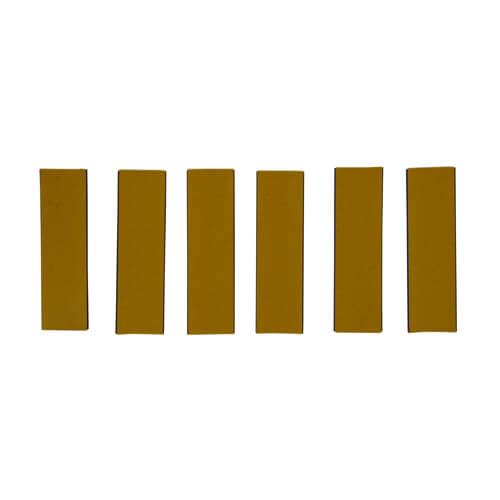 This pack of 6 mini intumescent sheets is pre-cut to suit hinges and is pre-fitted with self-adhesive backing.