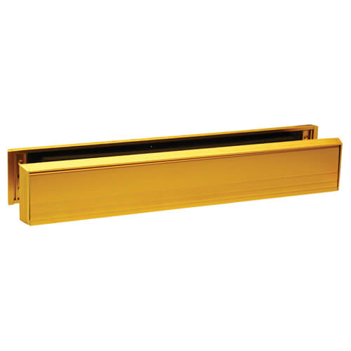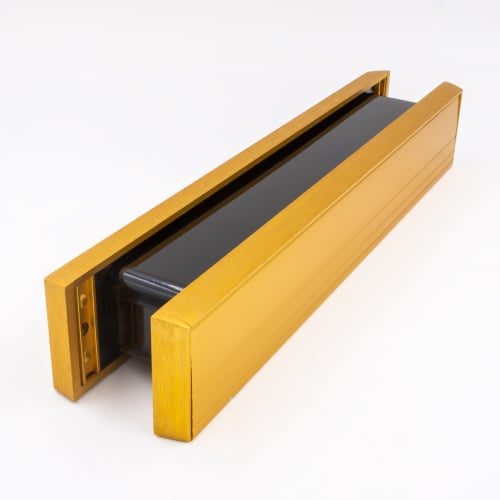 Slimline letterplate for doors which cannot accept standard height plates. Fixings not supplied. All metal construction, no internal brush seal. Use on doors with slim midrails or at the bottom of the door. Suits door thickness 36-70mm.