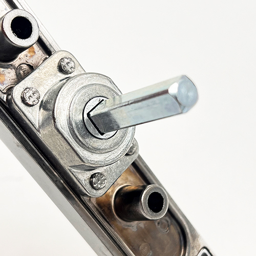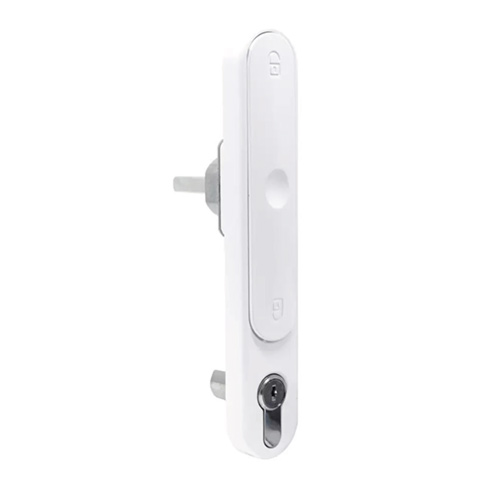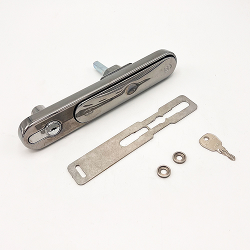 The T-shaped lever handle pops-out from its back plate for operation, offering a flush fit when closed. This version is the locking handle. Please note that the euro cylinder shown in the image is not supplied.