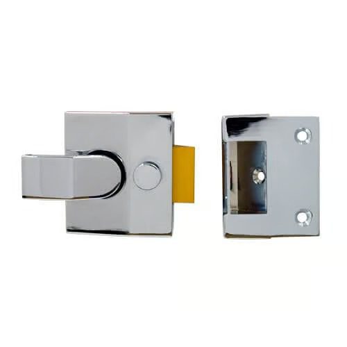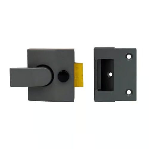 This nightlatch features a means of mechanical holdback which allows the sprung latch bolt to be physically retained within the body of the nightlatch. When this feature is activated, the latch will not engage when the door closes, therefore the door will not be secured. It is important to consider if this is a feature that is desirable for the application in question as in some circumstances the possibility of the door not being secured may cause issues. Also, some mechanical holdback devices also allow the latch to be secured in the locked position preventing access even when a key is used from outside deadlocking the door. It should also be considered if this is suitable for the application.