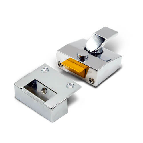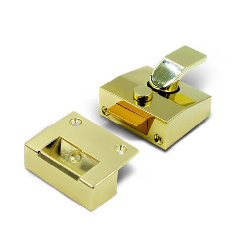 This nightlatch features a means of mechanical holdback which allows the sprung latch bolt to be physically retained within the body of the nightlatch. When this feature is activated, the latch will not engage when the door closes, therefore the door will not be secured. It is important to consider if this is a feature that is desirable for the application in question as in some circumstances the possibility of the door not being secured may cause issues. Also, some mechanical holdback devices also allow the latch to be secured in the locked position preventing access even when a key is used from outside deadlocking the door. It should also be considered if this is suitable for the application.