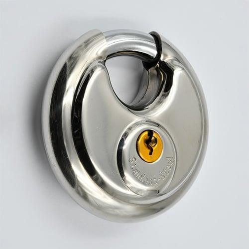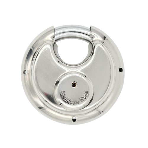 TSS stainless steel, high-security discus padlock supplied with 2 Keys.
