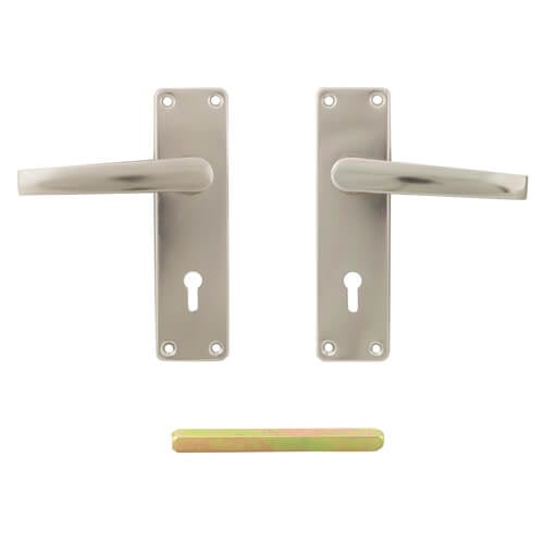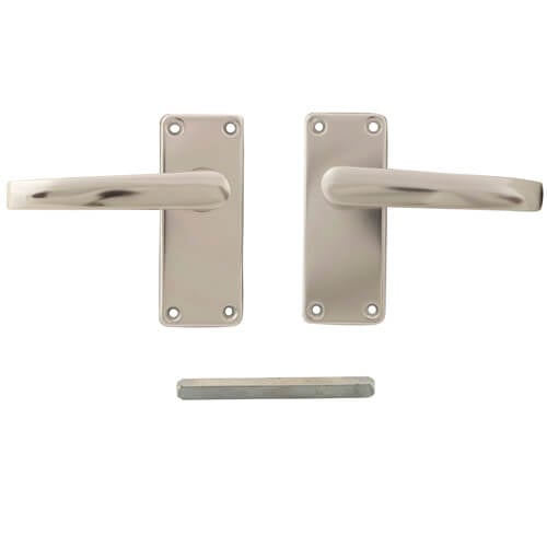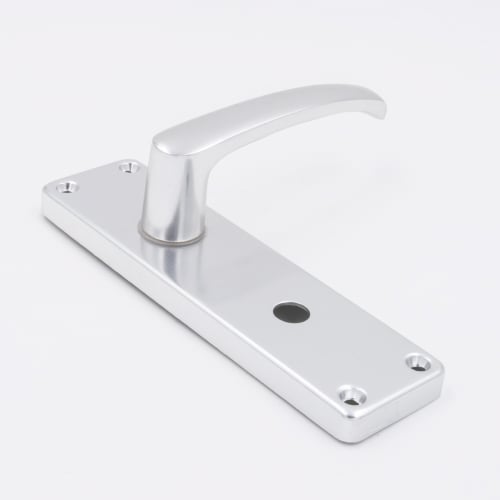 A lever on plate sprung satin aluminium handle, ideally suited for contract work.