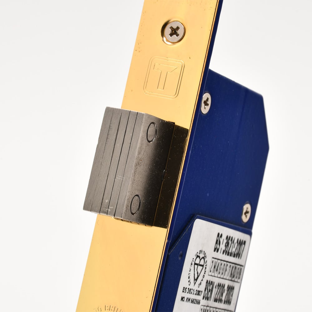 These locks have the distinctive upright design and meet the requirements of British Standard BS3621: 2007. To meet the requirements of British Standard BS3621, the deadbolt throws at least 20mm from the body of the lock to ensure positive deadlocking and additional resistance against attack.