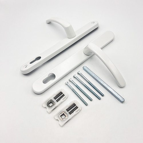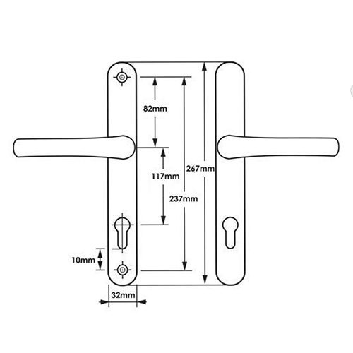 TSS Lever Lever UPVC Multipoint Door Handles – 117mm PZ – Sprung – 237mm Screw Centres – 267mm Backplate