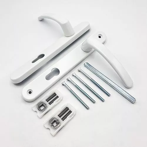TSS Lever Lever UPVC Multipoint Door Handles – 92mm PZ – Sprung – 203mm Screw Centres – 232mm Backplate