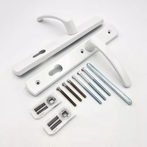 TSS Lever Lever UPVC Multipoint Door Handles – 92mm PZ Sprung – 215mm Screw Centres – 260mm Long Backplate – 3x Fixing Points