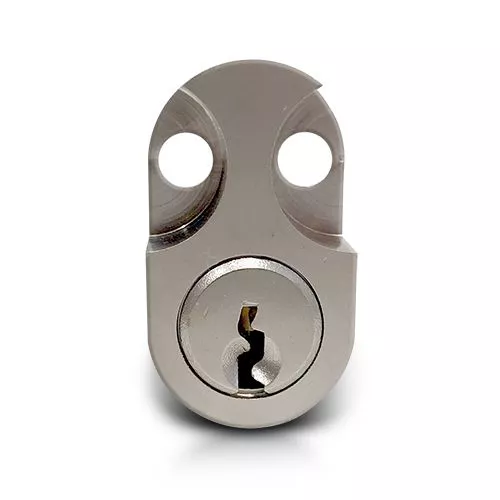 The TSS Swedish (Scandinavian) Internal Oval Cylinders use an open profile to allow the keys to be cut easily. This is the internal side cylinder in a Satin Chrome finish.