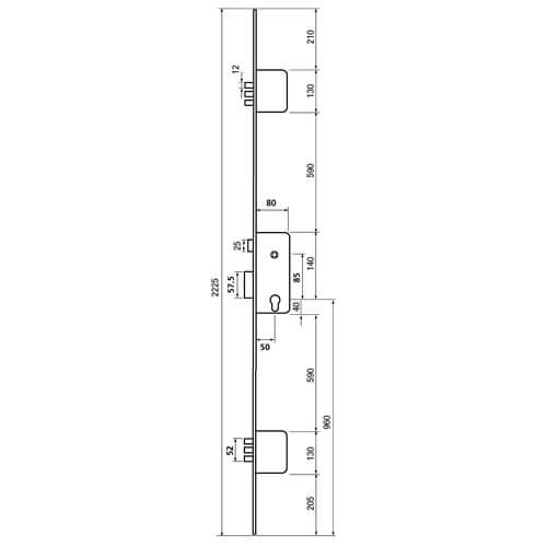A heavy duty European made lock featuring key wind operation and U-rail faceplate with a distinctive 85mm centres and 50mm backset configuration.