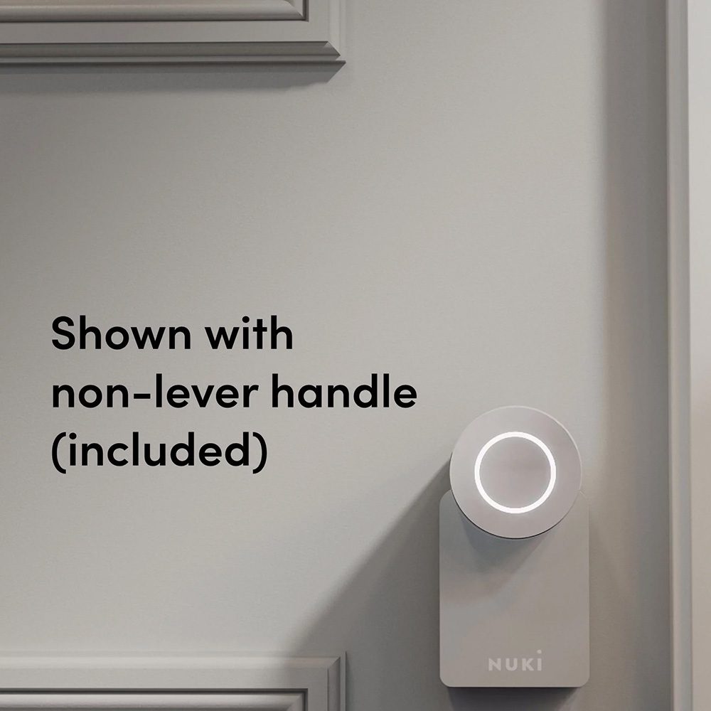 The Ultion Nuki smart handle has been engineered to suit the UK multipoint locking market. It combines a lever handle with a motorized smart lock to make a perfect retrofit solution. It has been designed to fit existing doors with handle fixings of 215mm, 211mm, 122mm and 92mm centres.
