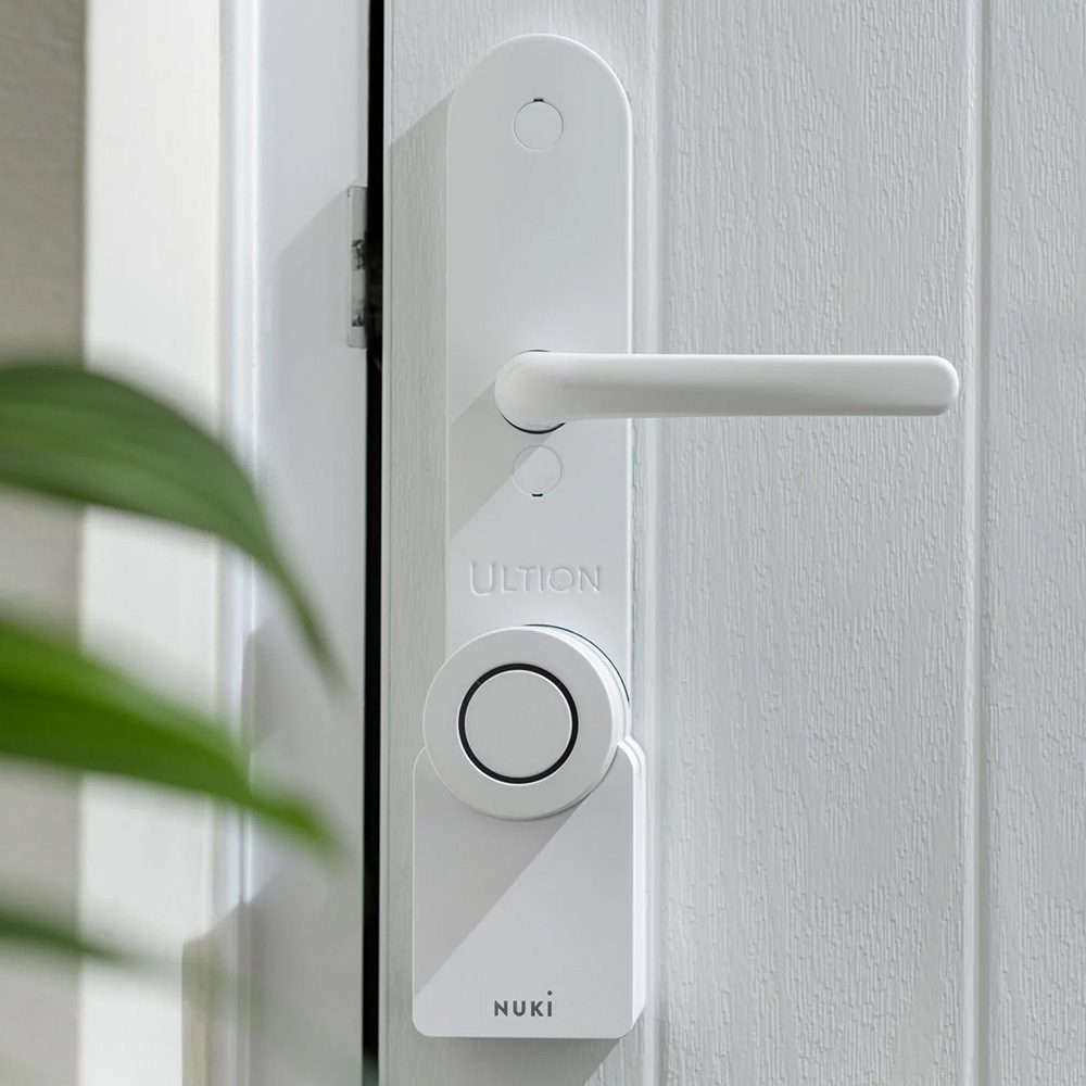 Ultion is compatible with any euro-operated lock with 92mm centres and 215mm, 211mm or 122mm screw centres. For Key Wind and Automatic operation locks, Nuki can be used to fully lock and unlock the door, using only the app, remote, keypad or smart home connection. This also allows the auto lock and unlock function to lock and unlock the door based on a timer. For the lift lever and nightlatch (including both split spindle and double spindle operation), the user will need to throw the handle to engage the locking points, before Nuki can turn the cylinder. A bridge or Nuki Plus is required for smartphone Wi-Fi access.