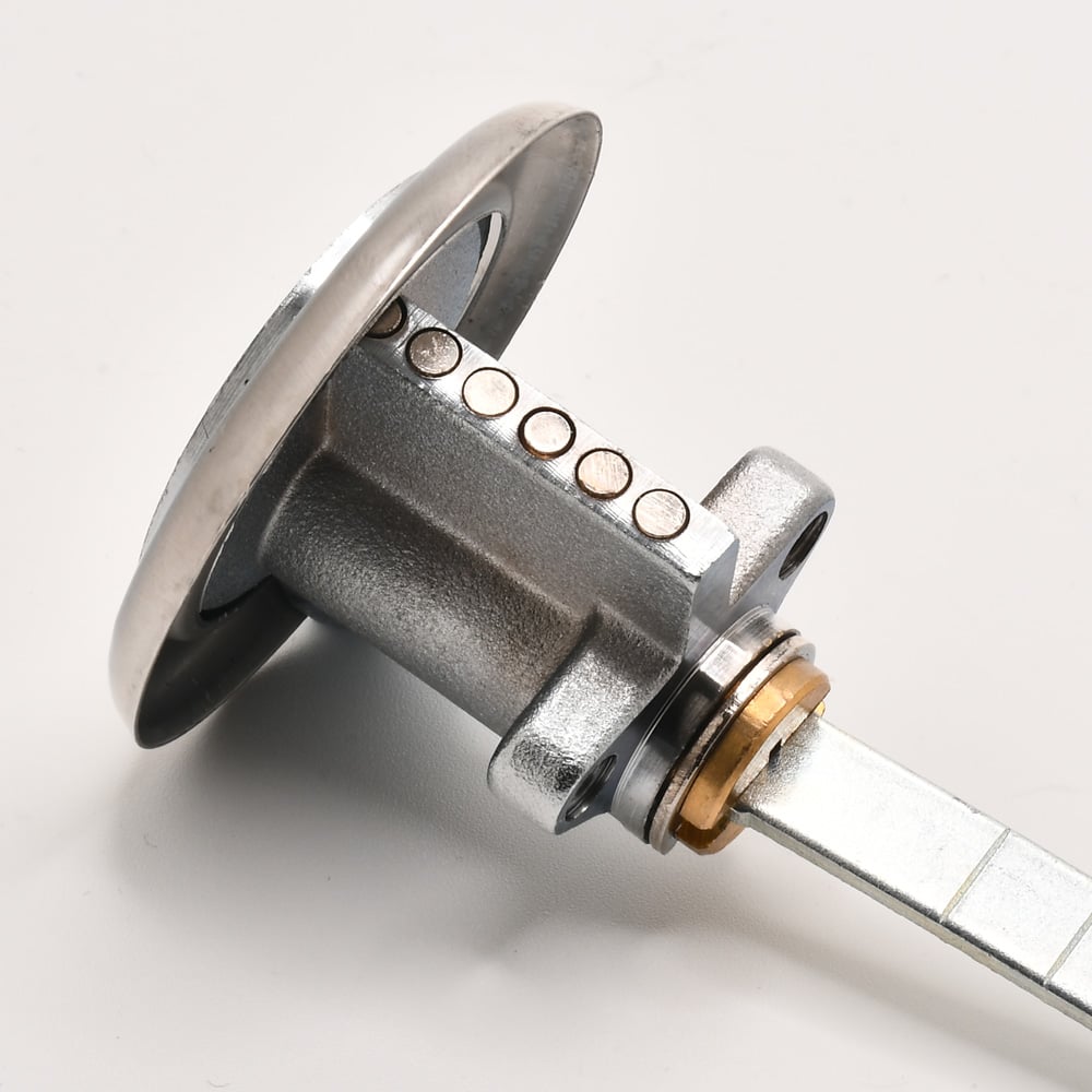 This is the VERSA 6-pin rim cylinder using an open profile to allow keys to be cut easily. It has a Quality 6-pin mechanism and has a dual finish.