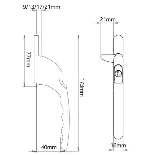 The VERSA V-SPUR Lite cockspur window handle has a 9mm step height.