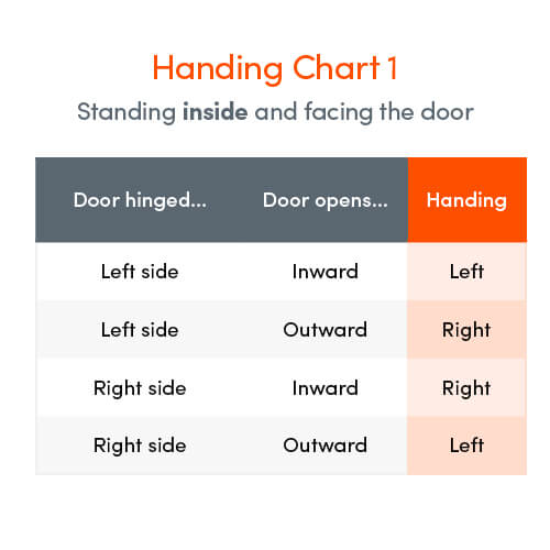 | Standing Inside, Door Hinged | Door Opens | Handing |