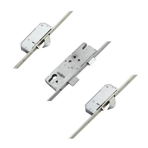 Hooks on this lock are automatically engaged as the door is closed without needing to lift the handle. The handle will retract the hooks from the inside and a further turn of the key deadlocks the door.