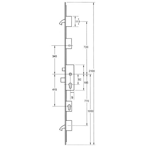 This Winkhaus Cobra multipoint door lock features 2 Hooks, 1 Deadbolt & 1 Latch with Entryguard Facility.