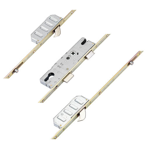 This Winkhaus Cobra multipoint door lock features 2 Rollers, 2 Hooks, 1 Deadbolt & 1 Latch.