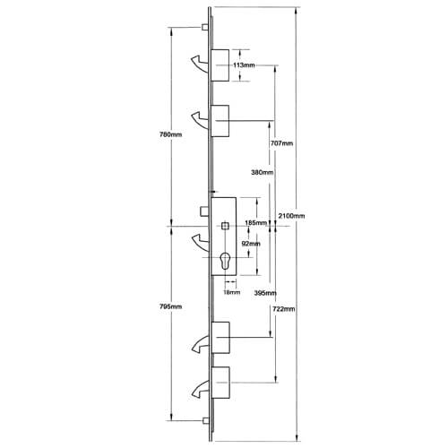 Winkhaus Scorpion locks are predominantly fitted to PVCu doors. They will also feature either 2 hooks as the additional locking points and are available with or without rollers for weather sealing and compression.