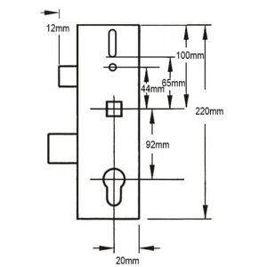 ERA multipoint door lock gearboxes are very distinctive, with a square design and no corner cut-outs. The overall length of the gearbox is 221mm and the width is the backset plus 18mm. This ERA gearbox features a thinner deadbolt than standard ERA gearboxes for use where the lock faceplate cut-out is too narrow for the…