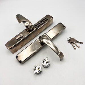 Low-traffic digital door locks featuring dual backplate function. This version has code lengths of 4-7 digits – Non-sequential, with 2000+ possible code combinations options. Can be used on rebated doors with corresponding rebates.